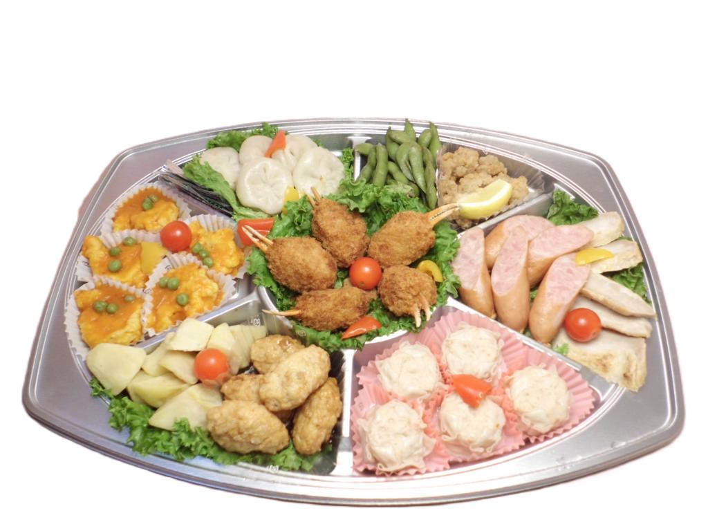 イベント弁当オードブル/折詰 ホーム イベント弁当 オードブルA(5人盛・税抜5,500円)ご注文は、仕込みの都合上3日前正午(日・祝日を除く3営業日前)までにお願いいたします。 価格 5940円(税込) 内容 ・カニ爪フライ ・軟骨つくね ・大エビチリソース ・ニラ饅頭 ・ポテトフライ ・たこザンギ ・枝豆 ・フランク ・トントロガーリック焼 ・海老肉焼売 メニュー一覧に戻る イベント弁当 特注弁当 オードブル/折詰 その他 メニュー表ダウンロード ご注文方法