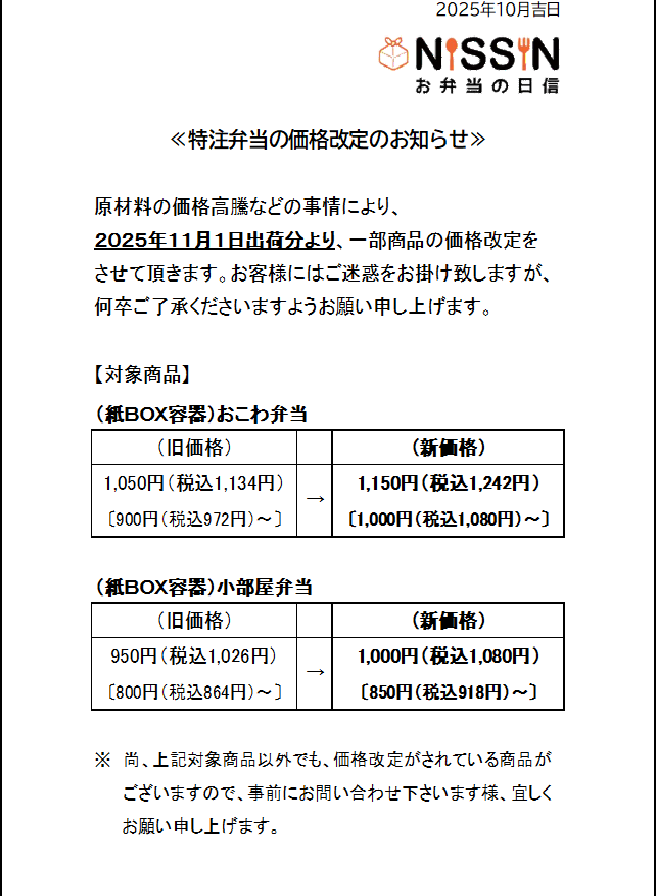 特別注文のイベント弁当に関しましては、ご予算やご希望に応じてお作りいたします。オードブルに関しましては商品案内に掲載されております内容になります。